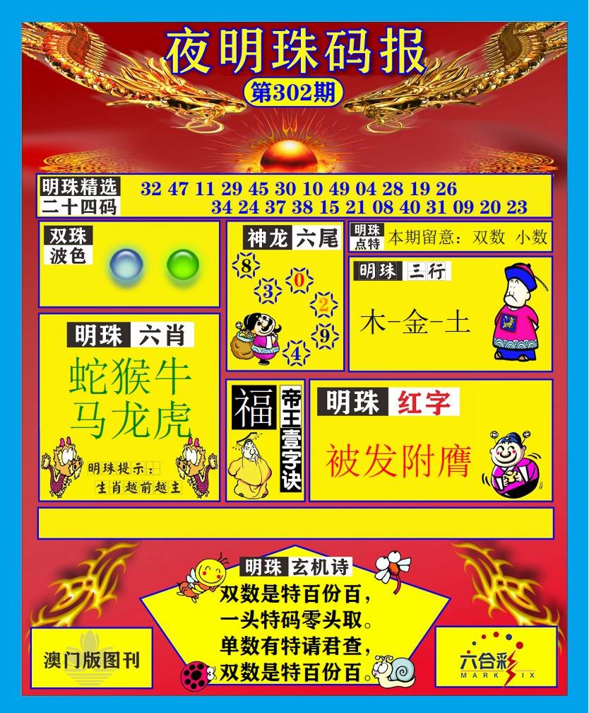 302期金牌⑥肖【蛇牛鼠鸡马】开:龙26准 |